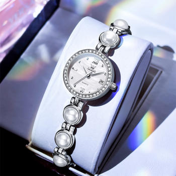 Diamond Luxury Women’s Quartz Dress Watch with Pearl Bracelet
