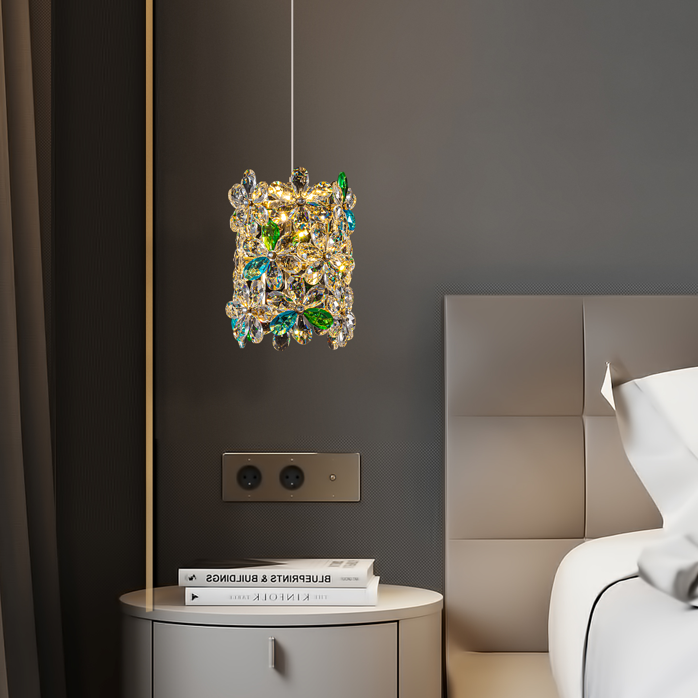 Each petal-shaped crystal is carefully hand-polished to perfection, allowing the light to refract and sparkle beautifully throughout the room. The floral design adds a natural elegance, while the plated copper finish enhances its refined look. Crafted from high-quality crystal, this pendant lamp not only shines with brilliance but also stands the test of time. Whether you hang it over a bedside table, in a dining space, or in your walk-in closet, it effortlessly transforms ordinary spaces into luxurious retreats.