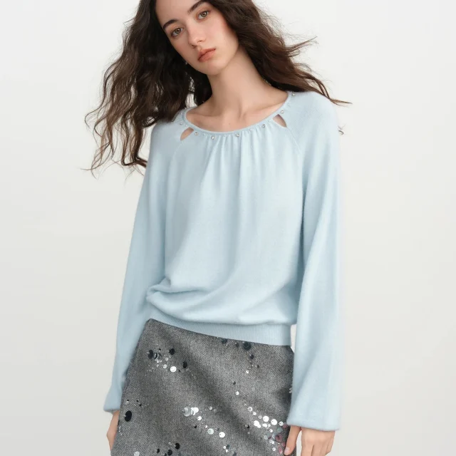 This lace knit sweater is a wardrobe staple for any woman who loves to stay cozy without compromising on style. The blend of rabbit wool and sheep wool creates a rich, warm fabric that feels like a hug around your body. The slight stretch ensures the sweater moves with you, offering both flexibility and comfort. The beaded detail adds just the right amount of sparkle, making this sweater suitable for everything from a day at the office to a weekend brunch with friends.