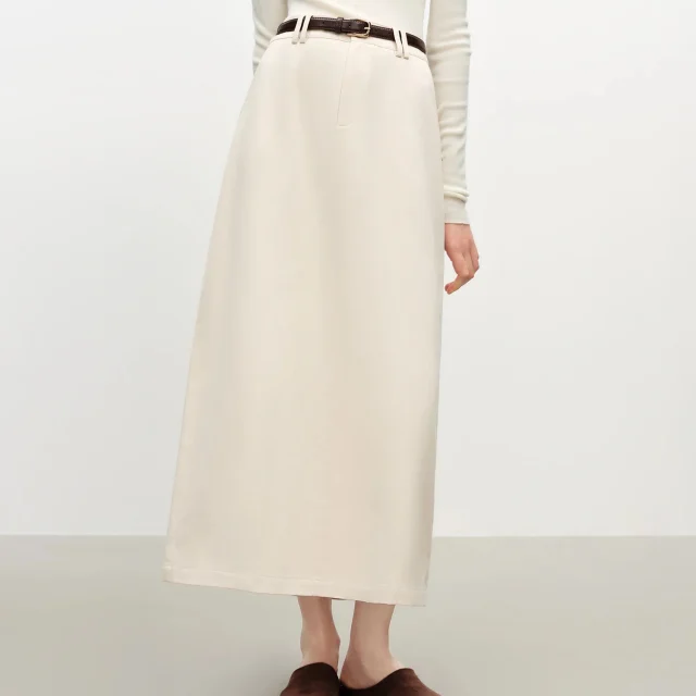 What truly sets this skirt apart is the balance between simplicity and versatility. The long straight cut brings a classic winter look, while the pure cotton material keeps it comfortable for all-day wear. The added belt lets you shape your style your way, from relaxed and loose to neatly cinched. It’s a staple piece you’ll reach for again and again when the temperature drops.