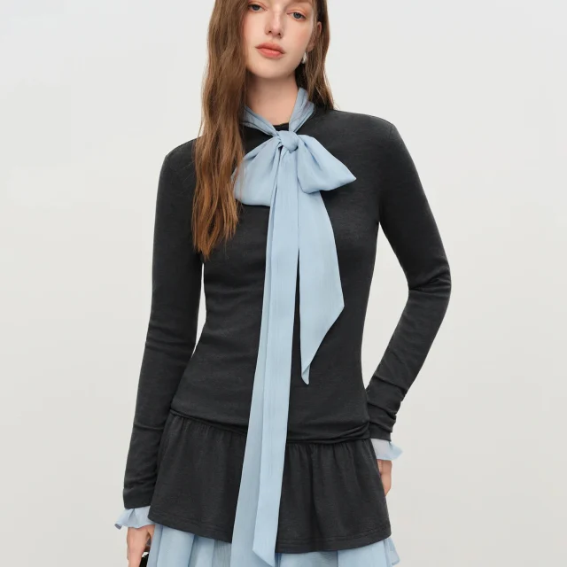 Embrace the cozy warmth of winter in this stunning chiffon ribbon shirt layered two-piece suit. Designed to add a touch of sophistication to your wardrobe, this outfit features beautiful ruffles and a ballet-inspired style that will make you feel graceful and elegant every time you wear it. Whether you’re dressing up for a special occasion or simply want to add a chic touch to your daily look, this shirt is the perfect choice for modern women who appreciate both comfort and style.