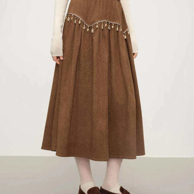 What truly sets this skirt apart is its combination of classic European-inspired style and modern comfort. The suede texture gives it a high-end feel, while the elastic waist ensures you stay comfortable all day. The tassel detailing adds personality without being overwhelming, making it a standout piece you can wear season after season.