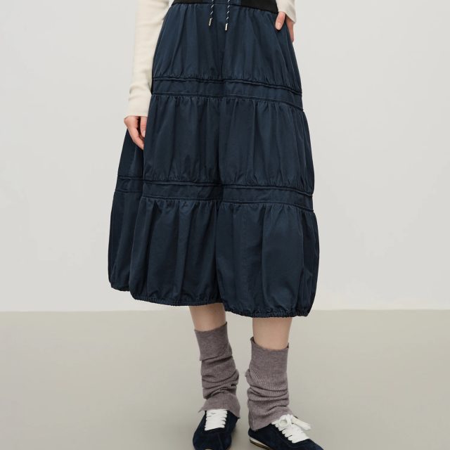 What truly sets this skirt apart is its thoughtful patchwork design and soft pleated structure. The lace-up drawstring detail adds visual interest while letting you adjust the fit for pure comfort. Made from 100% cotton knit fabric, it is breathable yet cozy enough for cooler weather. The slight stretch ensures you can move easily throughout the day without feeling restricted.