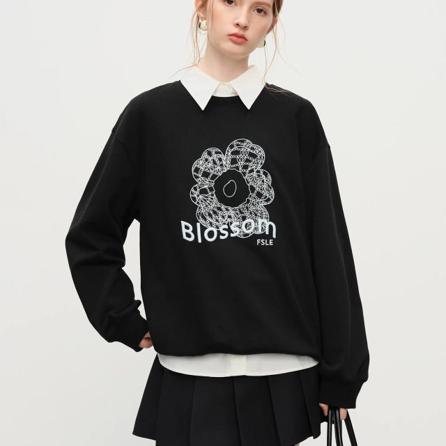 What makes this sweatshirt stand out is its delicate 3D floral embroidery, giving your outfit dimension and personality. The slight loose fit and relaxed drop-shoulder design create an effortlessly chic silhouette that flatters without feeling bulky. With full-length sleeves, a classic O-neck, and an open-stitch pullover design, it’s easy to slip on for work, weekend outings, or cozy evenings indoors.