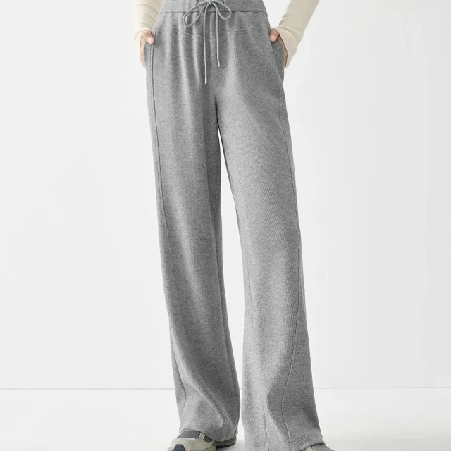 Unlike stiff winter trousers, these are crafted from a premium knitted blend of viscose, polyester, polyamide, and a touch of spandex. This unique mix gives them a soft feel with natural flexibility and durability. The front pleated detail adds a touch of structure, making them look refined while still feeling like loungewear.