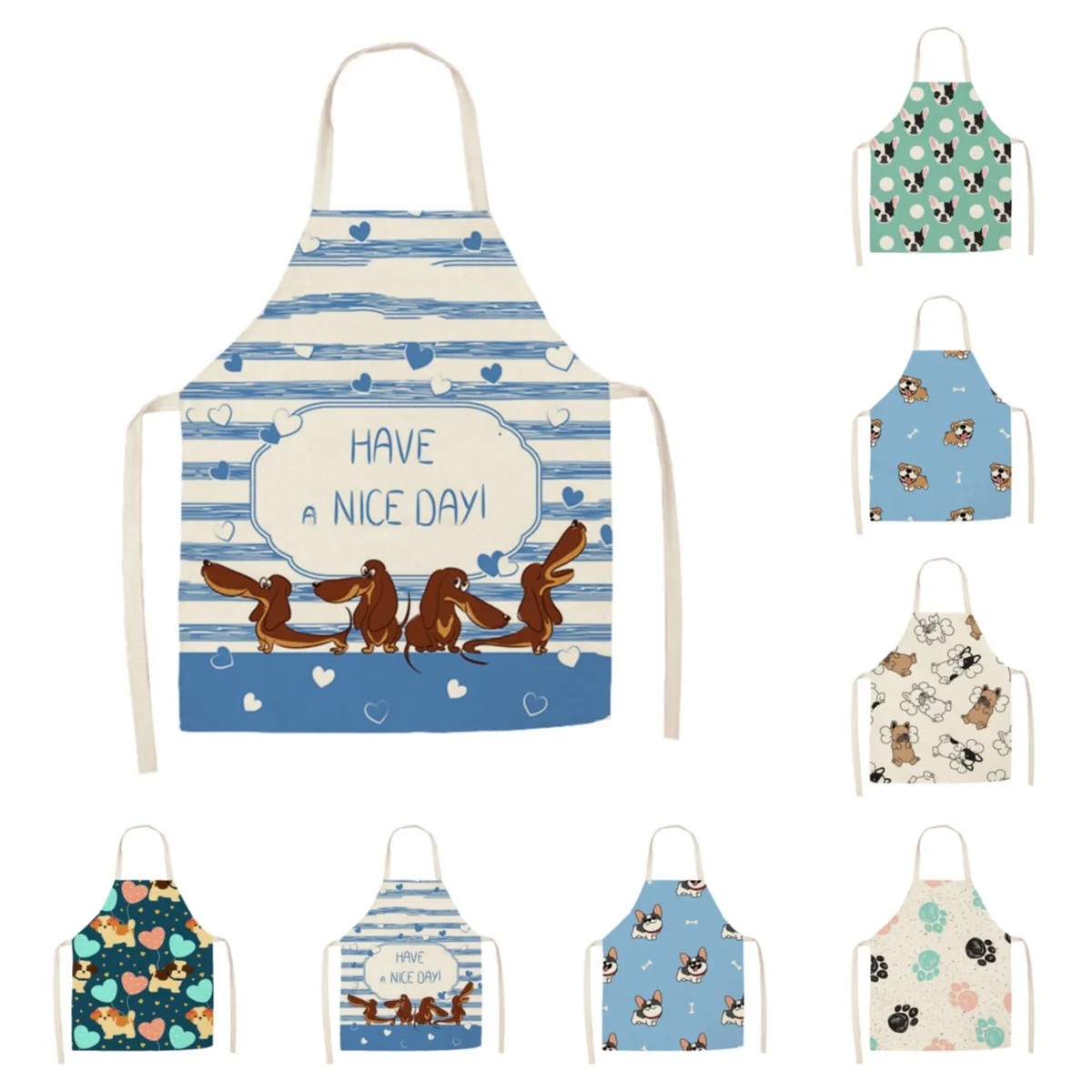 Made from a soft blend of cotton and linen, this apron feels lightweight yet durable — ideal for everyday kitchen use. The print features funny and cute dog faces that instantly brighten up your mood. With an approximate size of 18.5 x 15 inches (small) or 26.7 x 21.6 inches (regular), it offers full coverage and comfort for all body types. The easy tie-back waist ensures a secure fit, while the breathable material keeps you cool in every season — spring, summer, autumn, and winter.
