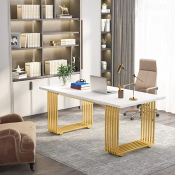 Modern White Executive Desk with Gold Legs – 70.9″ Wide Office & Conference Table