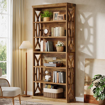 6-Tier Freestanding Industrial Bookcase – Large Wooden Bookshelf with Storage Shelves