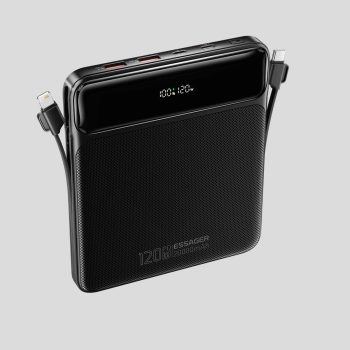 10000mAh Fast-Charge Power Bank with Retractable Cable & Digital Display