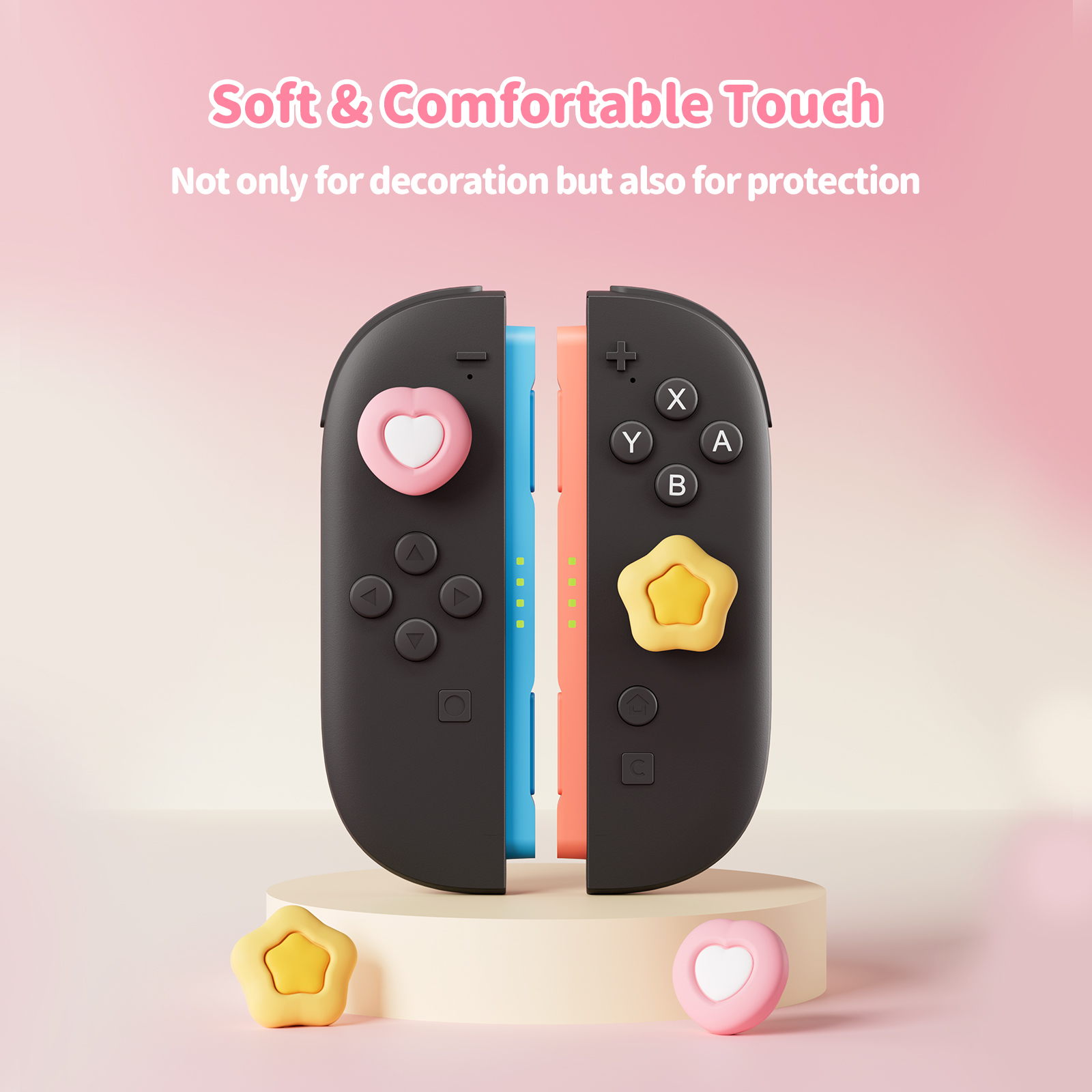 These thumb grip caps aren’t just an accessory—they’re a game-changer. Easy to install and snugly fitting over your joysticks, they ensure your movements are precise and slip-free. The Cream Heart design adds a playful, cozy vibe to your console, making it uniquely yours while protecting your joysticks from wear and tear.