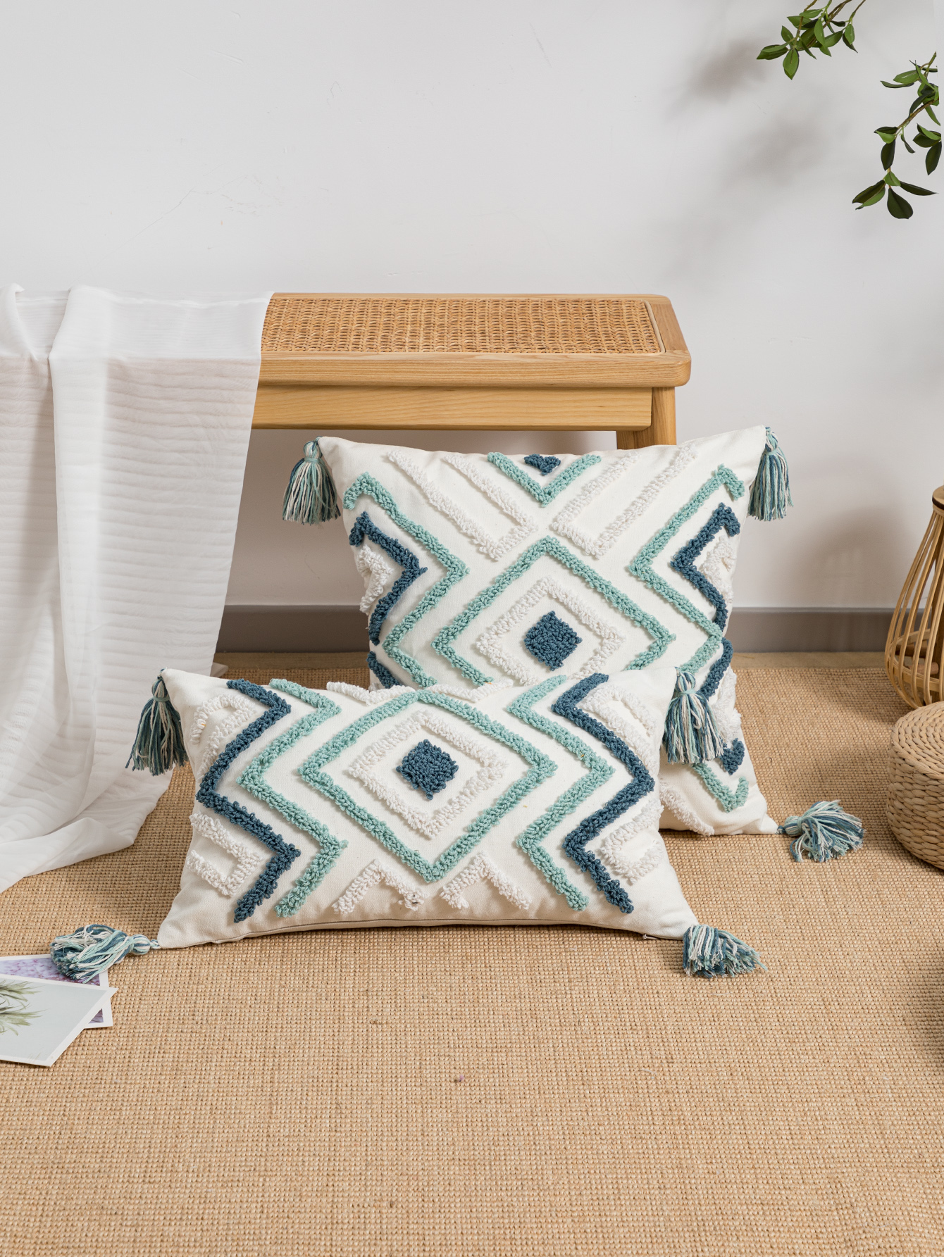 Crafted from 100% polyester with a refined jacquard weave, this pillow cover offers both visual depth and a soft, comfortable feel. The woven geometric design is not printed, giving it a rich texture that looks elevated and feels durable. It’s ideal for daily use in bedrooms and living rooms, adding character while staying easy to maintain.