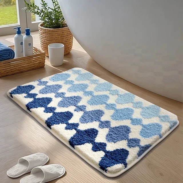 Geometric Tufted Anti-Slip Bathroom Mat – Soft Bedroom & Floor Rug
