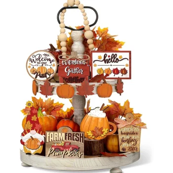 Rustic Thanksgiving Tiered Tray Decor Set – 8-Piece Autumn Farmhouse Collection