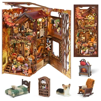 DIY Tarot Divination Book Nook Kit – 3D Wooden Puzzle Bookshelf Insert with LED Lights