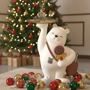 Large Resin Lollipop Bear Statue with Storage Tray Floor Decor