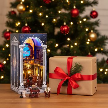 DIY Wooden Book Nook Dollhouse Shelf Insert Kit with Mini Furniture
