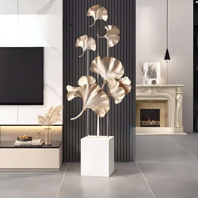 Transform your home into a haven of luxury and tranquility with the Ginkgo Leaf Resin Floor Sculpture. Inspired by the timeless beauty of nature, this exquisite piece captures the graceful form of ginkgo leaves in a stunning, modern design. Whether placed beside your TV cabinet, in the entrance hall, or as a statement decor in your living room, it radiates sophistication and charm. Crafted with meticulous detail, this sculpture blends art and style effortlessly to elevate any interior.