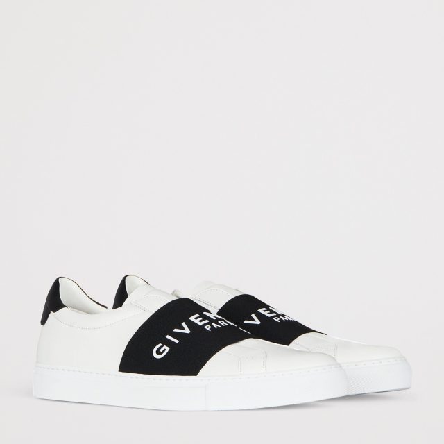 Featuring an embossed Givenchy logo on the back and a contrasting elastic band adorned with “Givenchy Paris” lettering on the instep, these sneakers are designed to catch the eye. The stylish leather heel adds a touch of sophistication, while the padded ankle ensures a snug, supportive fit. Made with the finest craftsmanship, these shoes combine modern aesthetics with unbeatable functionality.