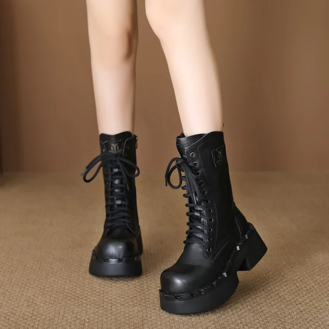 What truly sets these boots apart is the thoughtful balance of style and wearability. The sturdy square heel offers stable support while adding subtle height, measuring approximately 2 to 3.1 inches. A built-in platform reduces pressure on your feet, allowing you to stay comfortable even during long days. The lace-up front adds a vintage touch, while the side zipper makes them quick and easy to put on and take off.