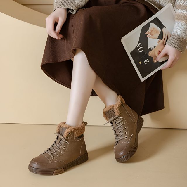 These boots are made with carefully selected genuine leather that feels soft yet strong. Inside, the plush-lined insole and faux fur lining gently wrap your feet, helping to retain warmth while staying breathable. A thick, cushioned sole adds comfort and stability, making these boots ideal for long walks, busy days, and everyday winter wear.