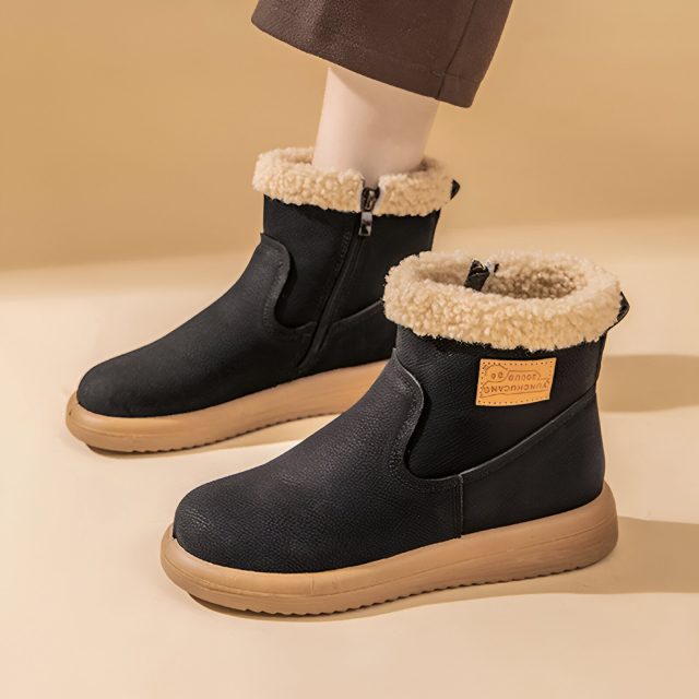 Women’s Genuine Leather Winter Ankle Snow Boots with Plush Lining