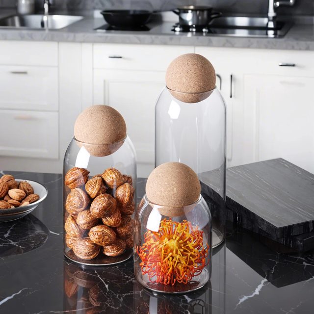 This glass storage bottle isn’t just about keeping things tidy—it’s about elevating your space. The smooth glass surface and round cork lid create a minimalist, organic look that fits effortlessly into modern homes. It’s perfect for those who love keeping their kitchen neat while showcasing the beauty of their ingredients. The airtight seal locks in freshness, protecting your tea, spices, and coffee from moisture and odor. Use it to display colorful fruit teas or artisanal blends—it’s as practical as it is beautiful.