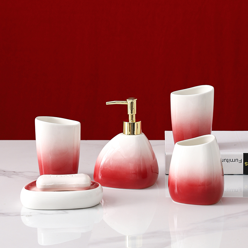 Transform your bathroom into a sophisticated sanctuary with this Gradual Red Bathroom Five-Piece Set. Designed with a minimalist aesthetic and eco-friendly materials, this set offers a perfect blend of style, durability, and functionality. Whether you’re preparing for a wedding or simply looking to enhance your daily bathing routine, these elegant ceramic accessories provide a touch of luxury and practicality. The thoughtful design ensures that each piece is both a beautiful accent and a useful part of your bathroom essentials.