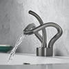 Gray & Gold Waterfall Bathroom Faucet – Modern Brass Basin Mixer Tap