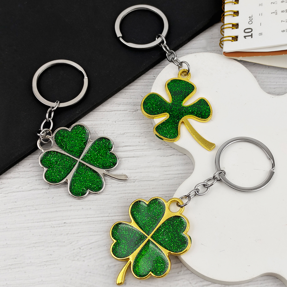 Green Glitter Shamrock Keychain – Lucky Four Leaf Clover Charm