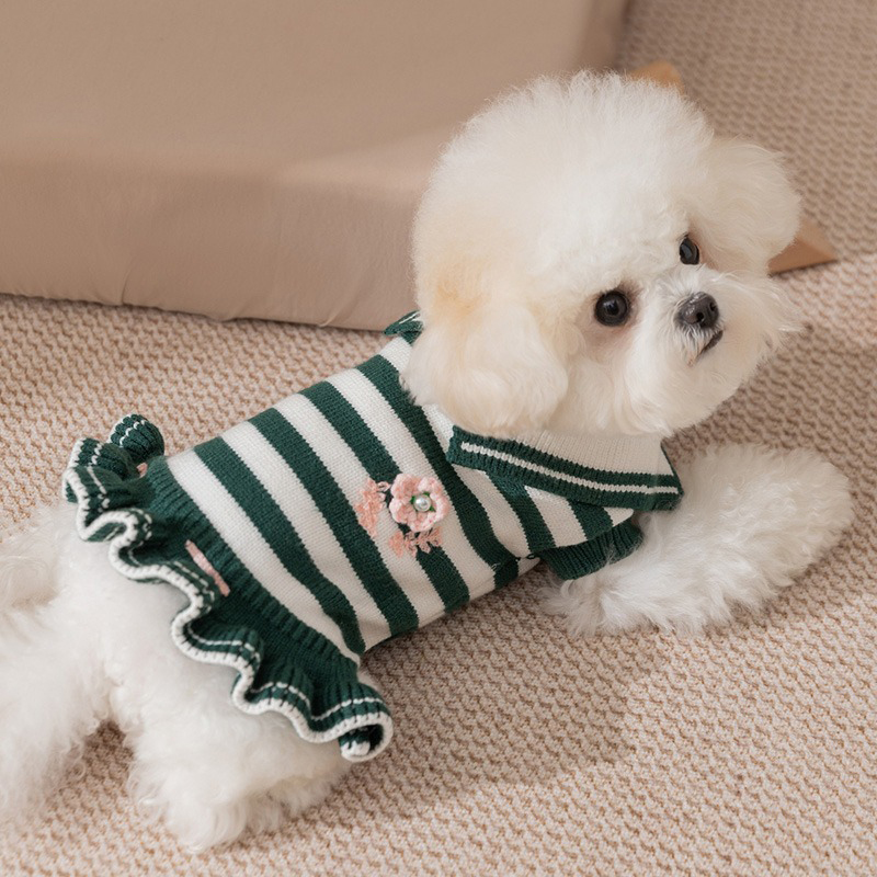 Give your furry friend a touch of elegance with this Green Striped Princess Dog Dress. Designed especially for small breeds like Bichon Frise and Teddy, this delightful pullover combines warmth, comfort, and style in one perfect winter outfit. The princely striped pattern and dress-style design make your pup stand out, while keeping them cozy in chilly weather.