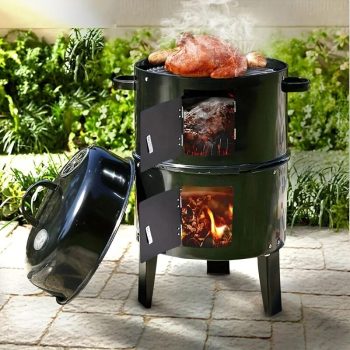 3-in-1 Charcoal BBQ Smoker Grill with Chimney and Thermometer