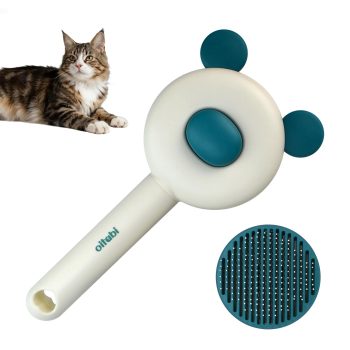 Double-Sided Cat Grooming Comb with Self-Cleaning Brush