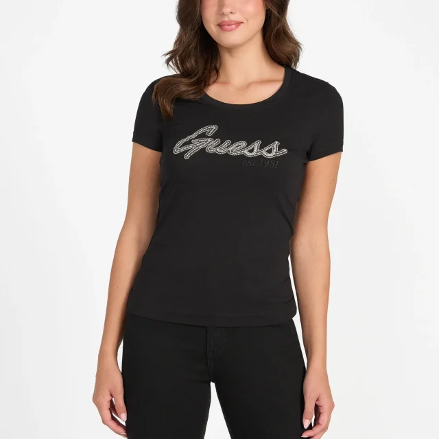 Guess Women’s Black Rhinestone Print T-Shirt – Fall/Winter Edition