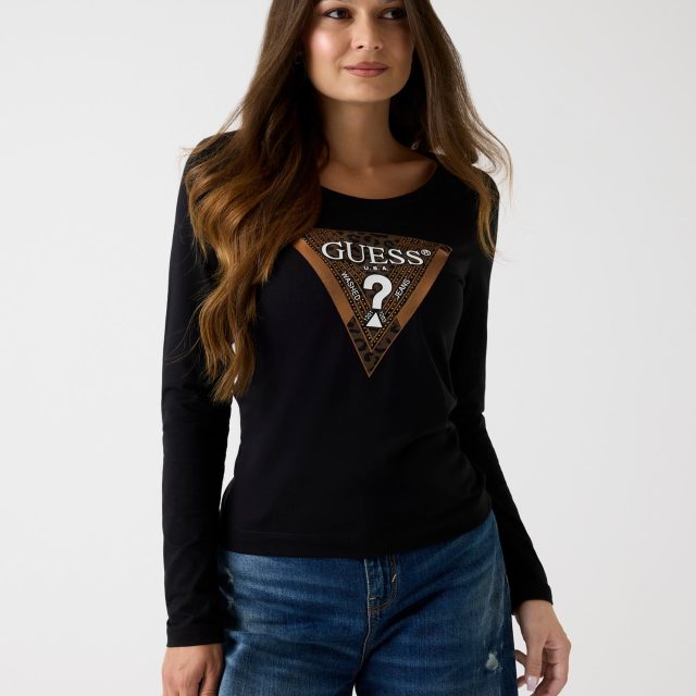 Guess Women’s Long Sleeve Printed Black T-shirt for Fall/Winter