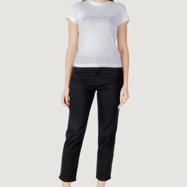 Guess Women’s White Rhinestone Cotton T-Shirt – Stylish & Comfortable