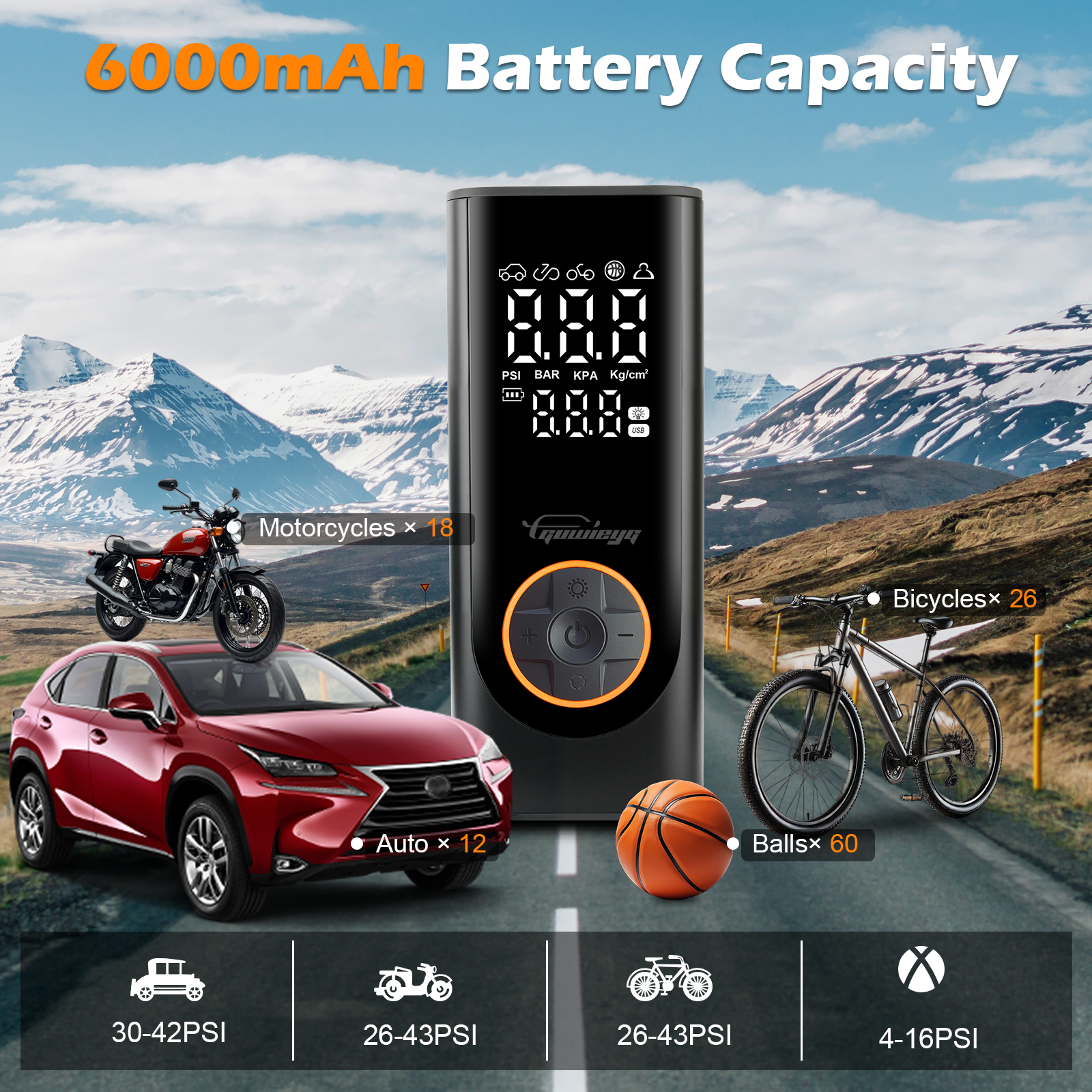Stay prepared for any road trip or emergency with this 150 PSI Cordless Tire Inflator Portable Air Compressor. Designed for convenience and reliability, this compact powerhouse delivers quick and accurate inflation for car tires, bikes, motorcycles, sports equipment, and more. With its strong motor and smart digital pressure control, you can inflate your tires in minutes—no gas station required.