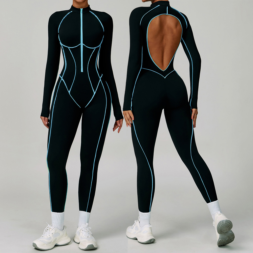 Step into confidence and comfort with this women’s long sleeve gym jumpsuit, designed to support your every move. Whether you’re flowing through yoga poses, pushing limits at the gym, or simply enjoying an active day out, this sleek fitness suit keeps you looking stylish while staying comfortable. With a flattering fit and smooth zipper front, this all-in-one outfit is a must-have for women who love to move with ease and elegance.