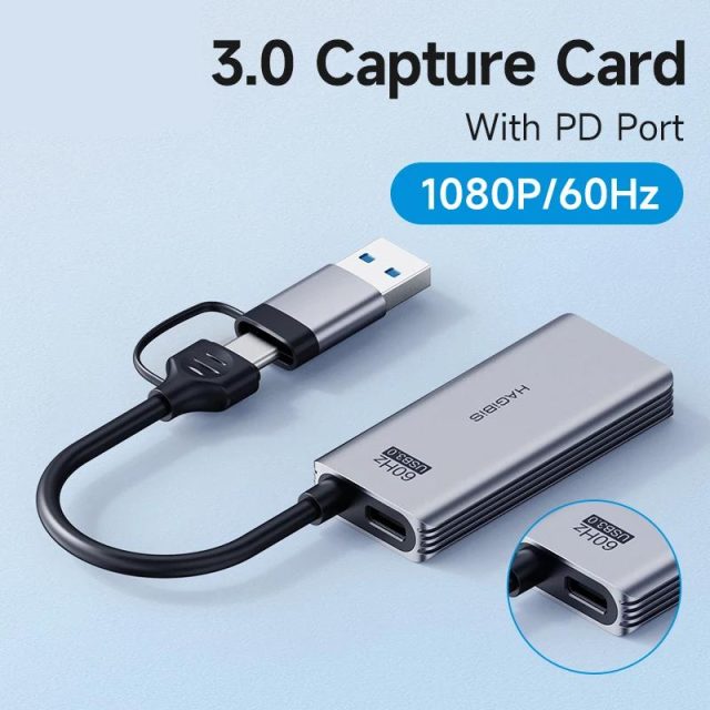 Hagibis USB 3.0 Video Capture Card With 100W PD For Meta Quest 3 iPad HDMI to USB/Type-c Gaming Live Streaming Video Recorder
