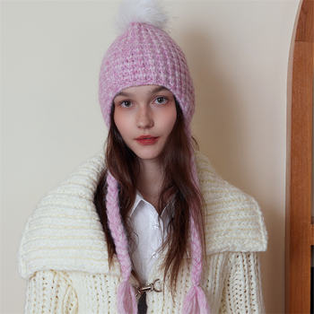 Women’s Winter Knitted Wool Bonnet Hat with Braided Fringe & Ear Protection