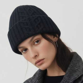 Women’s 100% Cashmere Diamond Knit Beanie – Thick Winter Hat