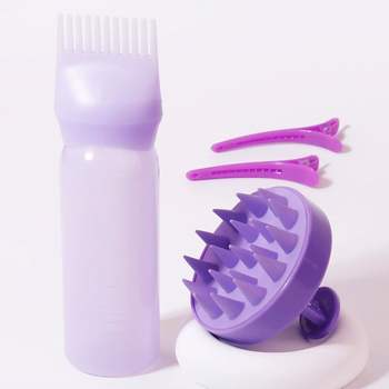 4-Piece Root Comb Applicator & Scalp Massage Brush Set with Styling Clips