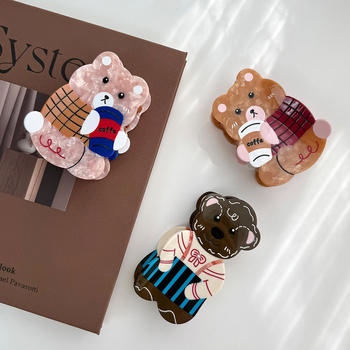 Cute Coffee Bear Hair Claw – Eco-Friendly Cartoon Hair Clips for Women
