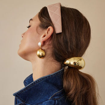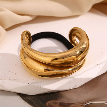 18K Gold Plated Stainless Steel Curved Hairband with Black Rubber Ponytail Tie