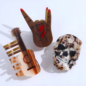Personalized Rock & Roll Guitar Skull Hair Claw Clip for Girls