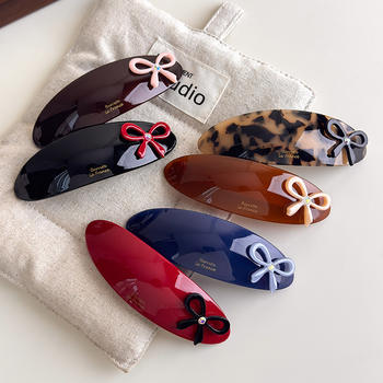 Vintage Large Acetate Bow Hair Clip – Three-Dimensional Elliptical Barrette