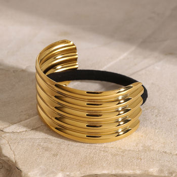 Stainless Steel 18K Gold Plated Multi Layers Glossy Black Hair Bands