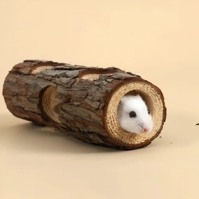 Small pets naturally crave places to hide, chew, and explore. This tunnel is best used as an everyday play toy and hideaway, giving your hamster a safe spot to retreat while also satisfying their instinctive need to gnaw. The unpolished holes and uneven textures are intentional, offering an authentic natural experience that stimulates curiosity and keeps pets active. Whether your pet wants to chew, climb, or nest, this wooden tunnel provides hours of healthy entertainment.
