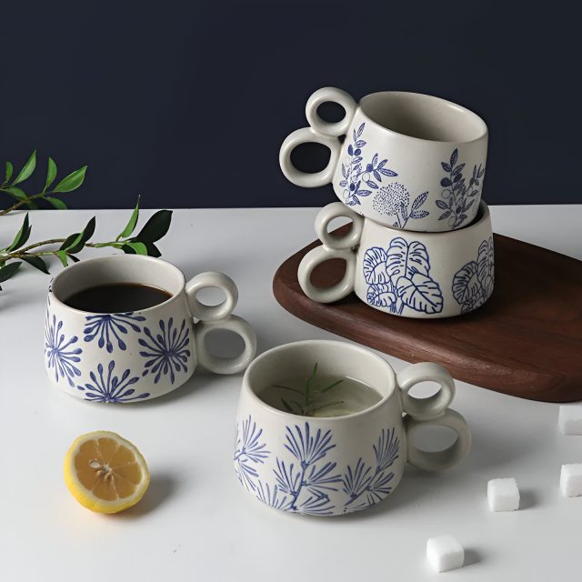 Step up your morning routine with this beautifully hand-painted blue and white glaze mug, perfect for coffee, tea, or any beverage that deserves to be sipped in style. Made from high-quality porcelain, this mug showcases a stunning retro design, blending classic charm with a modern twist. Whether you’re enjoying your morning coffee or serving breakfast tea, this elegant stoneware cup brings a touch of creativity and nostalgia to every sip. It’s more than just a cup—it’s a piece of art that enhances your daily moments.