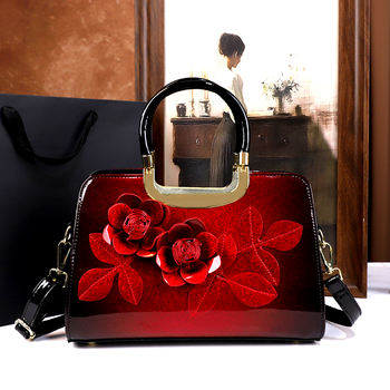 Elegant Floral Patent Leather Handheld Crossbody Tote Bag for Women