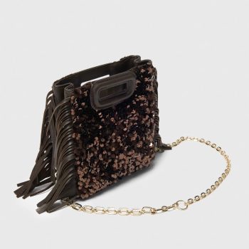 Glitter Sequins Mini Tassel Bag, Luxury Designer Shoulder Handbag with Chains
